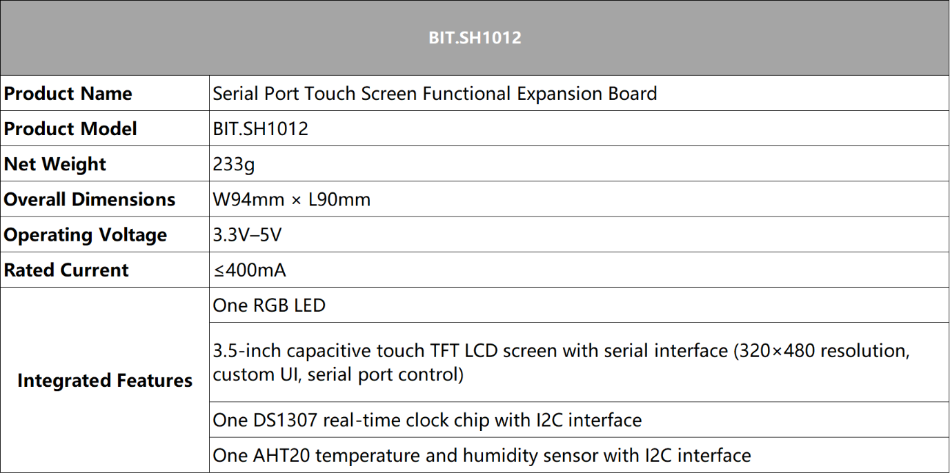 SH1012 UART Touch Screen Expansion Card