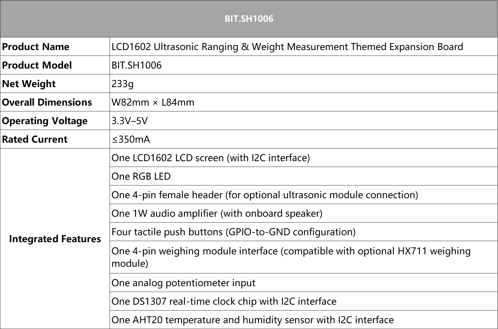 LCD1602 Ultrasonic Ranging & Weight Measurement Themed Expansion Board