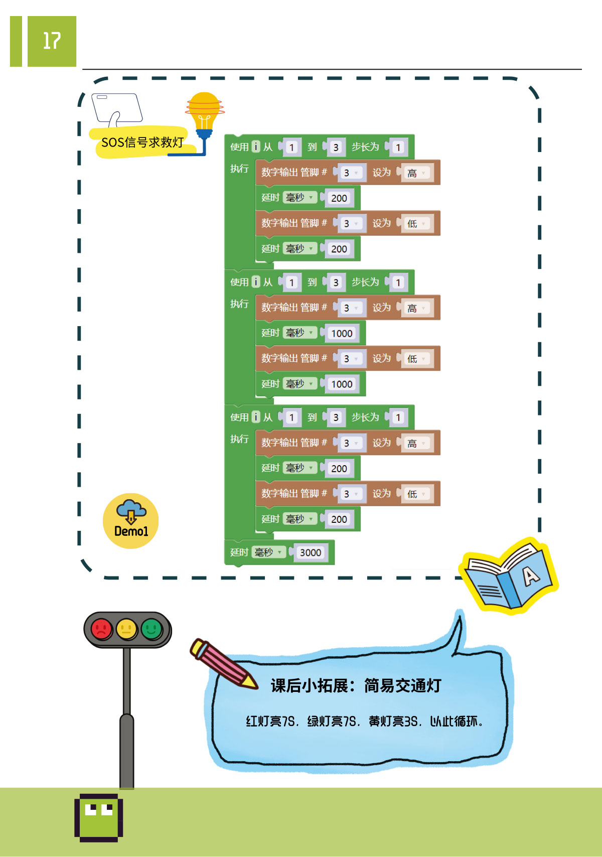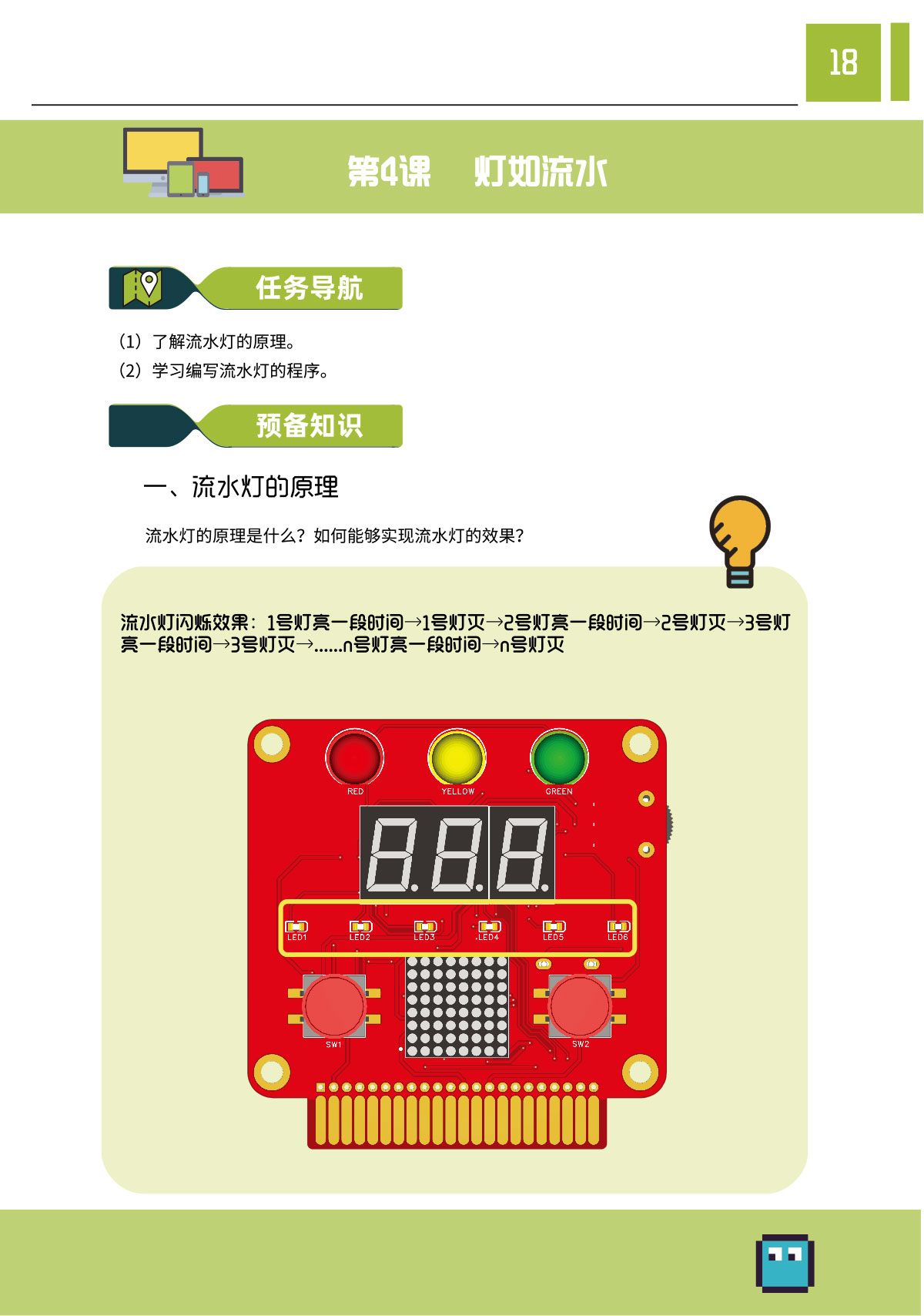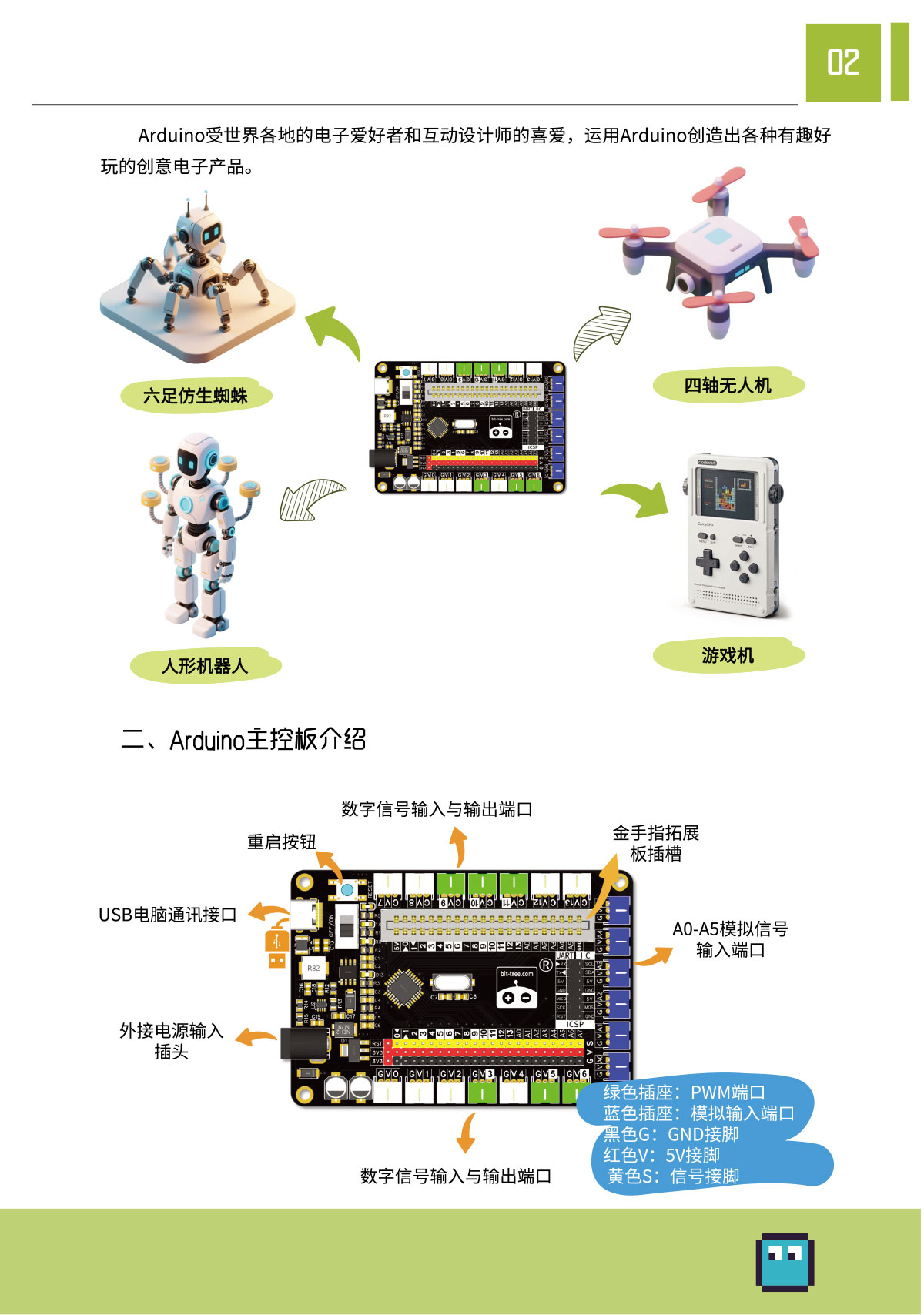 通过丰富的项目实践,引导读者深入了解基于Mixly图形化下Arduino编 程及其应用。内容从基本概念点灯、流水灯、一位数码管、蜂鸣器到两位数码管、电机、舵机、串口通信、超声波、红外等综合常用项目的开发。 初学者可以通过亮灯,代码编写,了解程序基本流程和编程技能。 随着技能的提高,读者可以尝试多传感器结合提高中级应用能力。高 级项目如红绿灯、幸运大转盘、智能风扇控制系统和多功能,则挑战读者的设计和实现能力。本册适合初学者学习,也适合中小学的信息技术教师和创客教师作为参考。
