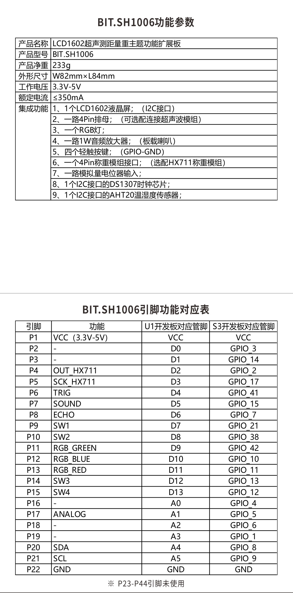 BIT.SH1006 LCD1602超声测距量重主题扩展卡