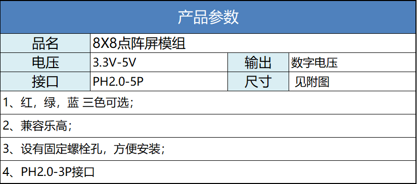 8×8点阵屏模组32×32(红/绿/蓝/白可选)