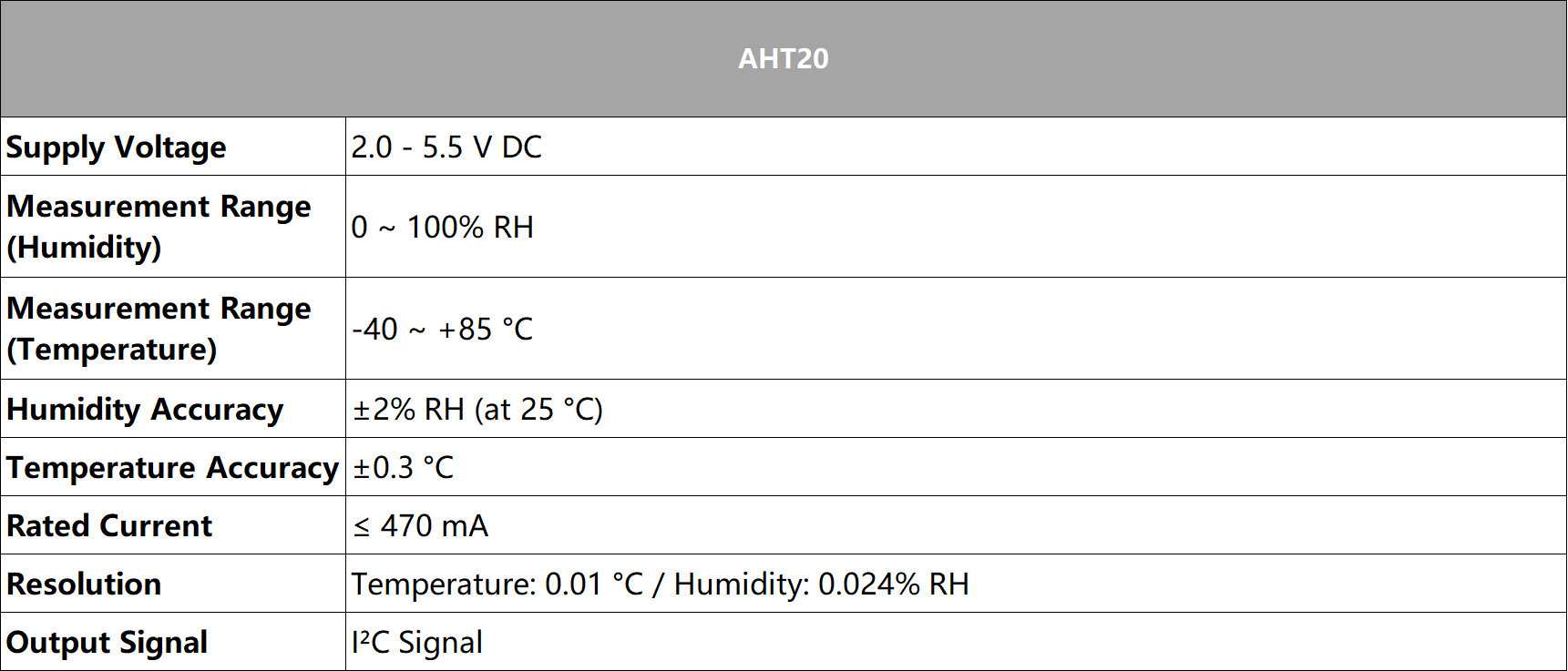 /** AHT20温湿度传感器参数 **/