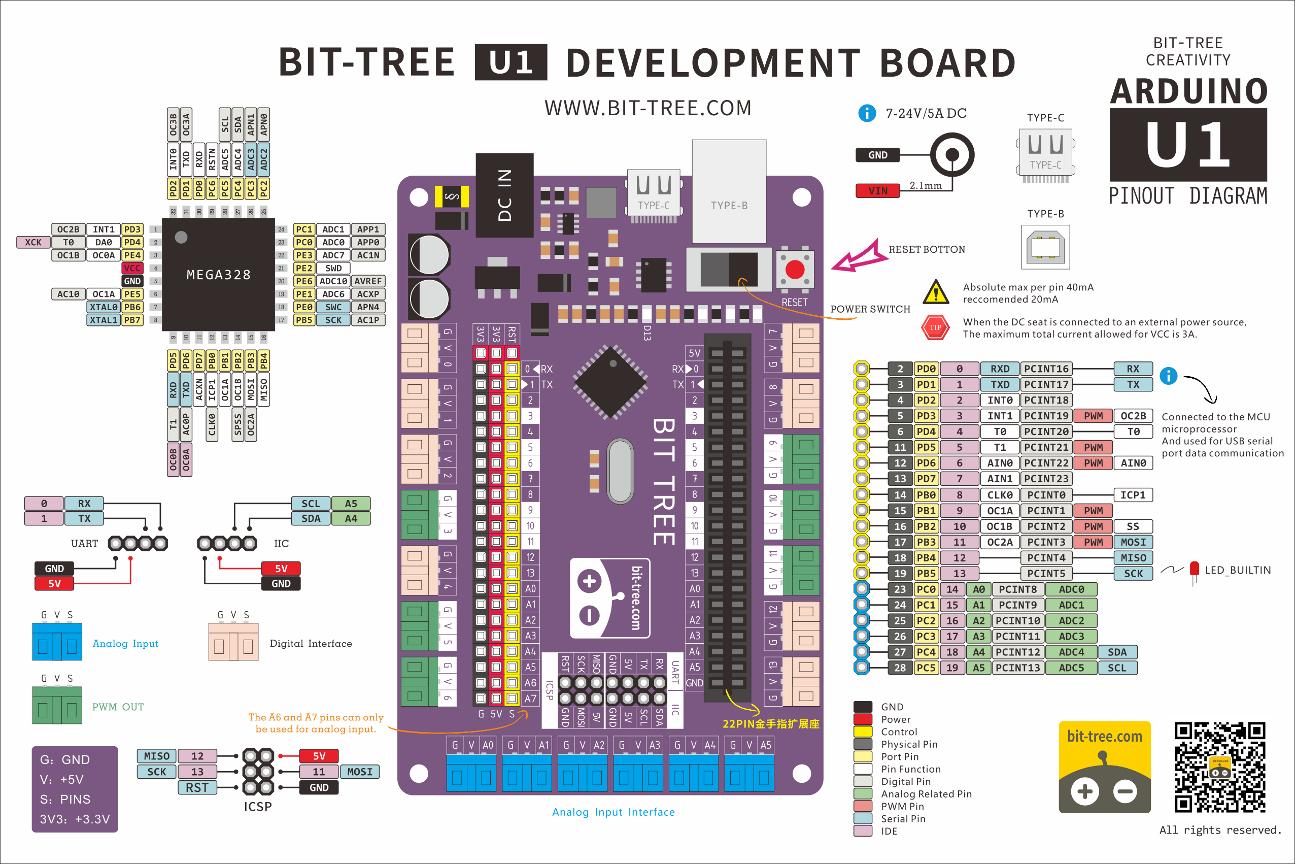 The Bit-Tree 【U1】 development board is a fully functional STEM programming starter kit developed based on the Arduino UNO R3. It features an ATmega328P microcontroller, which operates at a maximum frequency of 20MHz and delivers performance up to 20MIPS. This makes it an extremely powerful tool with a wide range of applications.